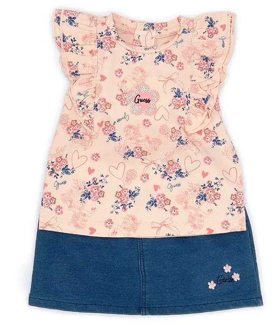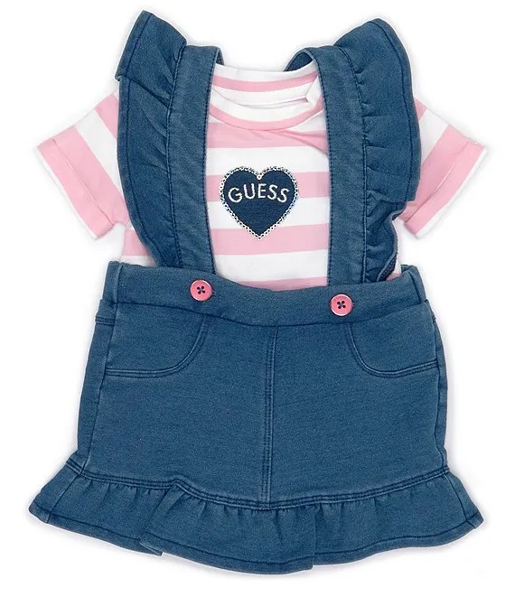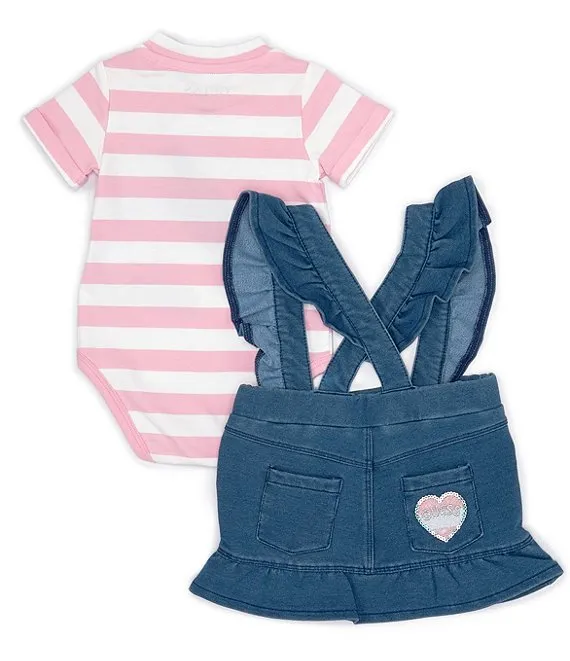 Guess Baby Girls 3-24 Months Sleeveless Knit Denim Jumper Dress & Short-Sleeve Striped Jersey Bodysuit