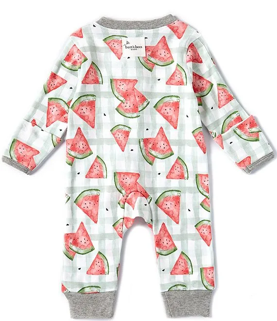Baby Girls Newborn-9 Months Long Sleeve Watermelon Printed Coverall