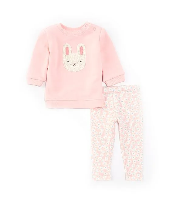 Adventurewear 360 Baby Girls 3-24 Months Round Neck Long Sleeve Knit Bunny Applique Sweater Set
