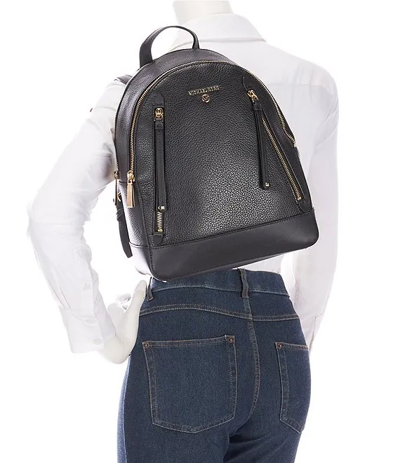 From Michael Kors, the Brooklyn Medium Pebbled Leather Backpack features: