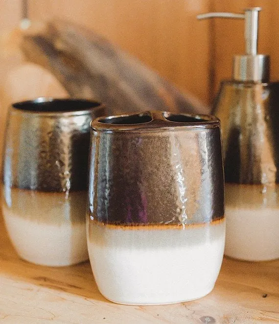 Paseo Road by HiEnd Accents Gilded Stoneware 3-Piece Bath Countertop Accessory Set