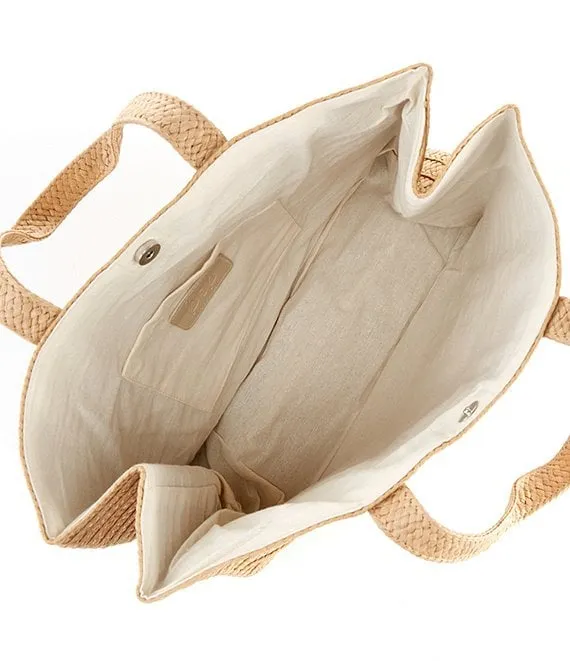 A fun embroidered phrase on one side brings bright joy to this classic, woven tote bag. Large enough to fit all you need for a day spent poolside or beachside, or even a fun weekend trip