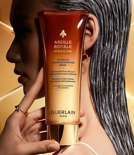 Guerlain Research has concentrated two powerful active ingredients at the heart of the double mask: Phytokeratin helps to compensate for keratin loss in the hair fiber and fills in gaps to reinforce its structure. A floral oleo-extract revives color's radiance and intensifies hair's shine.