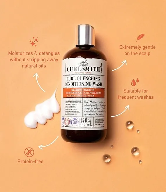 Apply a generous blob of this foamless co-wash into wet hair. Massage into the scalp and smooth through the ends, finger detangling. Leave on for 3 minutes, rinse and reveal silky smooth curls. For thirsty curls, follow with Curlsmith Double Cream Deep Quencher, then style with your favorite Curlsmith creams or gels.