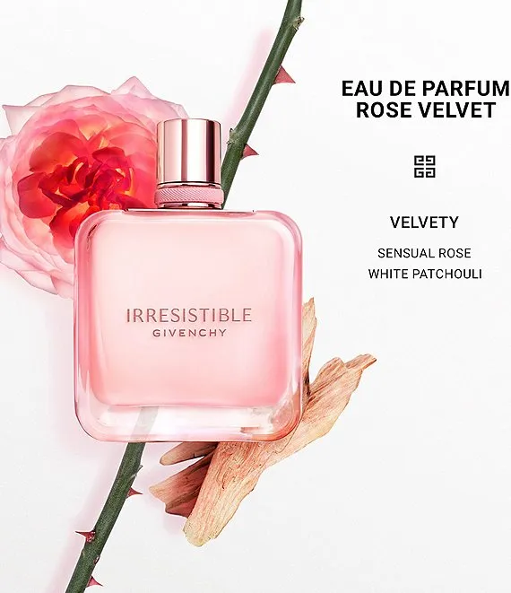 Velvety Rose is enveloped in White Patchouli to create the addictive floral perfume for women, Givenchy Irresistible Eau de Parfum Rose Velvet. Infused with notes of Iris and Tender Wood, this fragrance reveals the femininity of Rose, Irresistible's signature note. Tenderness is the new bold.