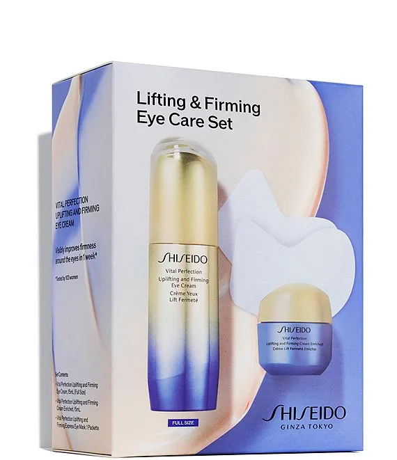 See the difference around your eyes and skin with this lifting and firming trio, starring a full-sized Vital Perfection Uplifting and Firming Eye Cream. Pair with our other lifting icons: Vital Perfection Uplifting and Firming Cream Enriched and Vital Perfection Uplifting and Firming Express Eye Mask for a dramatically youthful look.