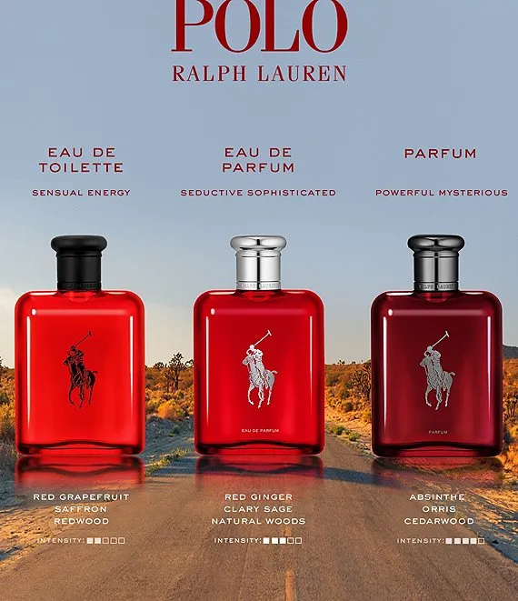 Ralph Lauren Polo Red Parfum is a long-lasting men's cologne for those who embrace the unexpected. Thrilling and complex absinthe mixes with fresh and opulent orris. At the heart, sustainable bergamot and diva lavender merge and refine the captivating scent. The classic masculinity of cedarwood finishes the intense men's fragrance with seductive ruggedness. The result is an enveloping, yet rich and seductive scent. Presented in a rich crimson red, consciously designed, refillable bottle with a modern silhouette and metallic accents.