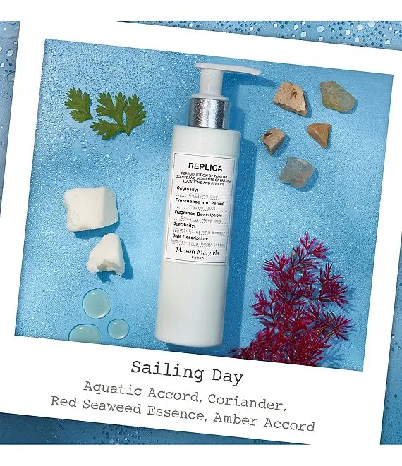 A moisturizing and tender body lotion to recreate the memory of a Sailing Day every day of the week. Delicately perfumed with REPLICA's Sailing Day scent, this body lotion brings a soft and invigorating sensation while hydrating and nourishing your skin. This body lotion is nourishing and moisturizing thanks to a complex of hydrating agents, shea butter, apricot kennel oil & vegetal glycerin which absorbs quickly to leave your skin hydrated, silky smooth and radiant.