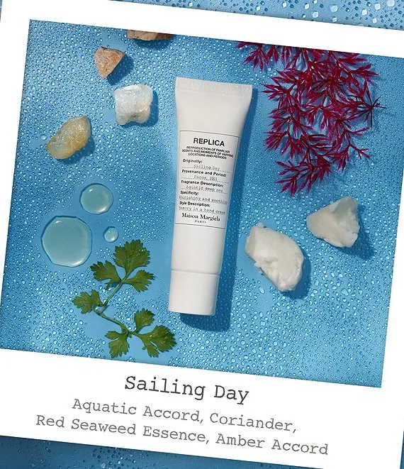 A moisturizing and tender hand cream to recreate the memory of a Sailing Day every day of the week. Delicately perfumed with the REPLICA iconic Sailing Day scent, this hand cream brings a soft and invigorating sensation while hydrating and nourishing your skin. With a complex of hydrating agents, such as vegetal glycerin, and shea butter. Soothing and nourishing thanks to hyaluronic acid, this non-sticky hand cream leaves your skin moisturized and supple.