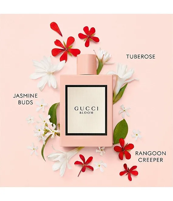 A sophisticated perfume capturing the spirit of the contemporary, diverse and authentic women of Gucci. Bloom is created to unfold like its name. Authenticity is woven through qualitative, highly concentrated natural ingredients in this perfume for women. Notes of natural tuberose and Jasmine leave an unexpectedly rich white floral scent on the skin. Rangoon Creeper, a plant that changes color when it blooms, infuses this Gucci perfume with a powdery, floral edge. The vine’s flowers are redolent with a slightly powdery feminine floral perfume.