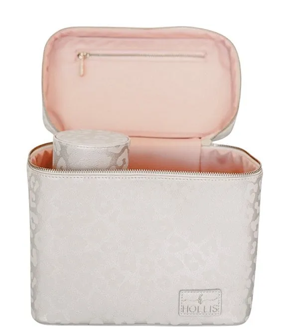 x Dillard's Champagne Leopard Vegan Leather Lux Makeup Bag