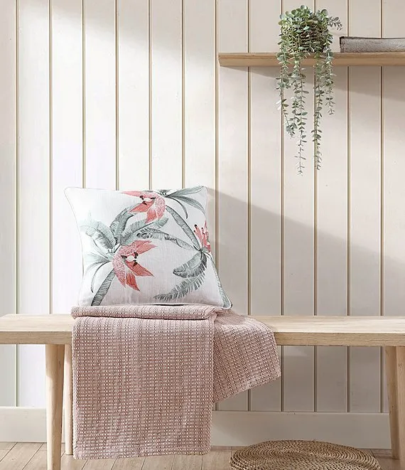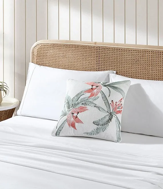 From Tommy Bahama, the Acapulco Palms Embroidered Faux Linen Square Decorative Pillow features: