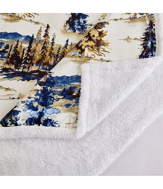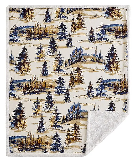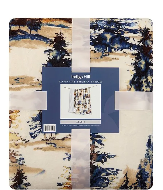 Wrap yourself in the tranquil beauty of twilight with our Acadia Campfire Sherpa Throw. Taking a leaf from the golden hour in the Sierra Nevada, this throw melds an ethereal palette of blues and golds into a pattern of misty forest trees. The enchantment of a woodland retreat is woven into every fiber, ready to transport you right into nature's serene embrace. Lined with a plush sherpa for added warmth, and crafted for easy care, it's an inviting partner for your cozy home lounging or fireside dreams. To top it all off, we've managed to capture this forest magic at a price that won't stump your budget.