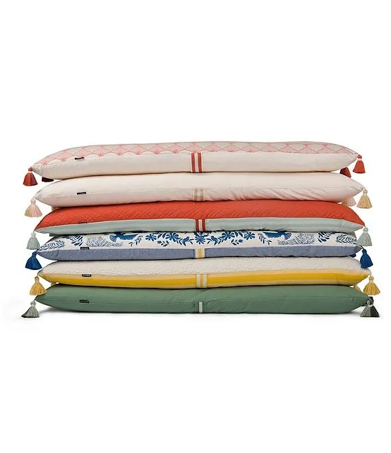 - Jacquard, yarn-dye stripes, and decorative tassels