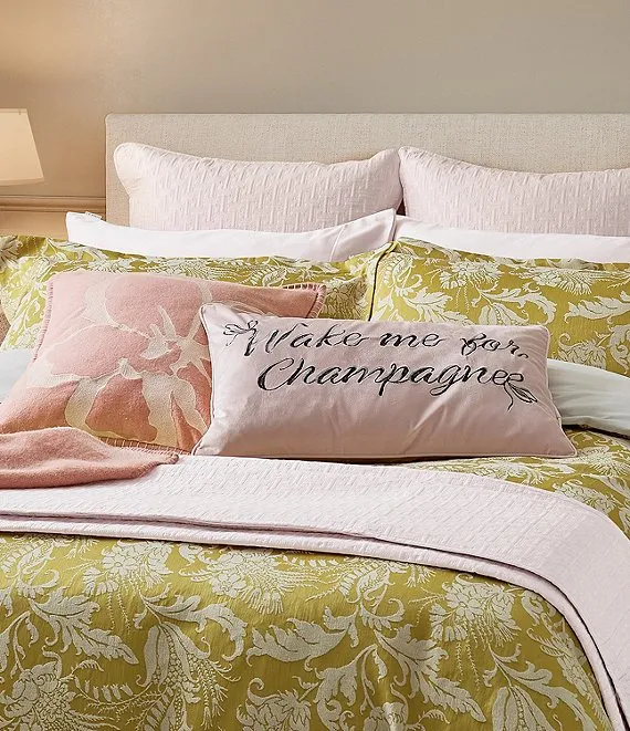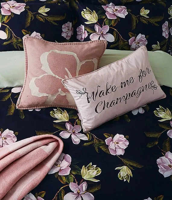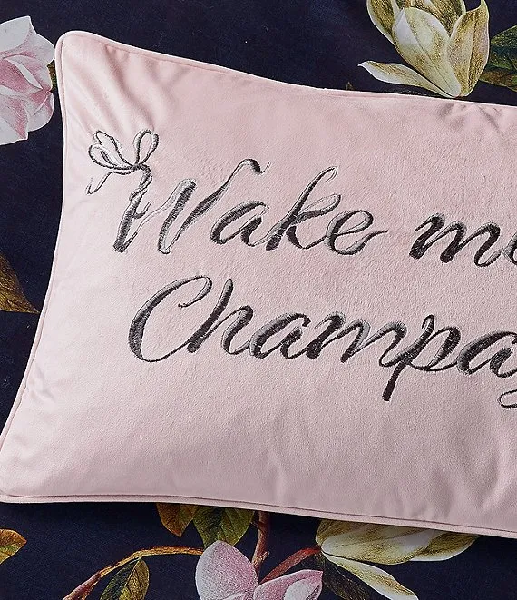 A champagne breakfast is always a good idea! Add a playful touch to your space with the Ted Baker Wake Me For Champagne decorative pillow. The quirky statement is embroidered with metallic threads on poly velvet for a soft feel.