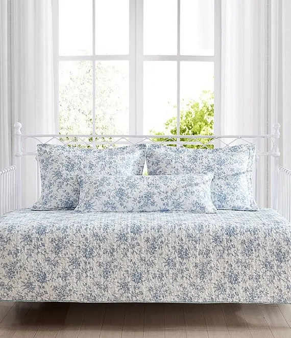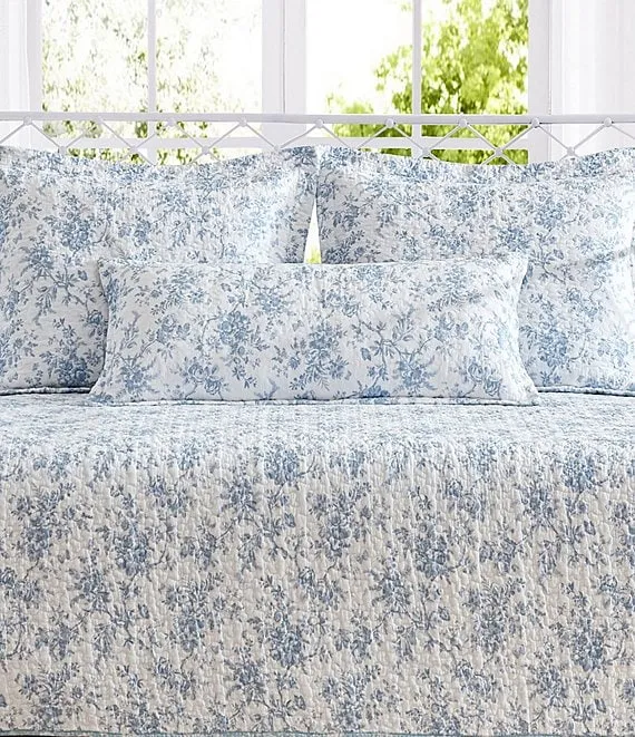 Blue Floral Walled Garden Daybed Quilt & Sham Set