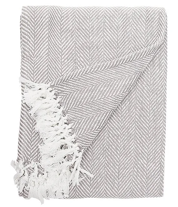 Torin Herringbone & Fringed Cotton Throw Blanket