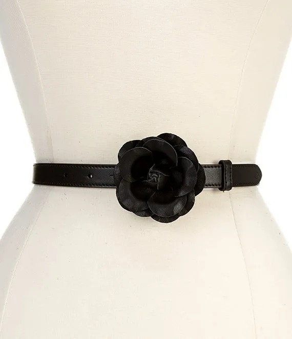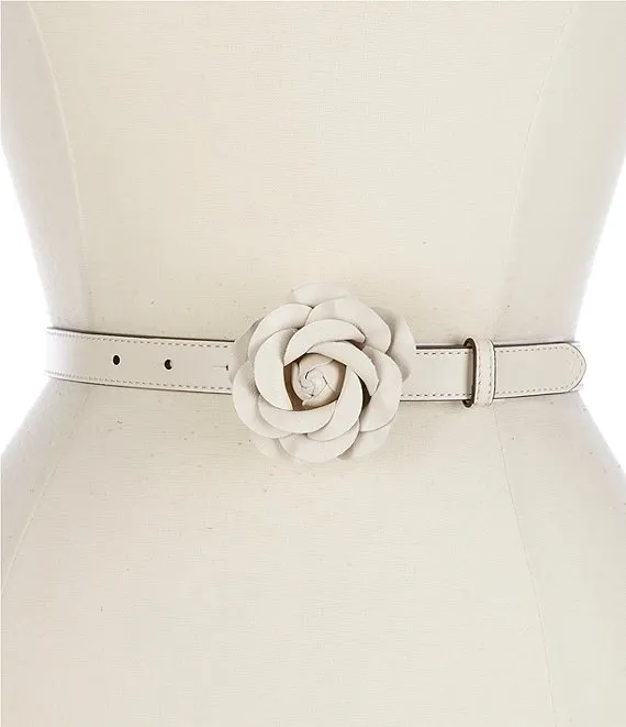 Lauren Ralph Lauren 0.75" Leather Floral-Buckle Skinny Belt