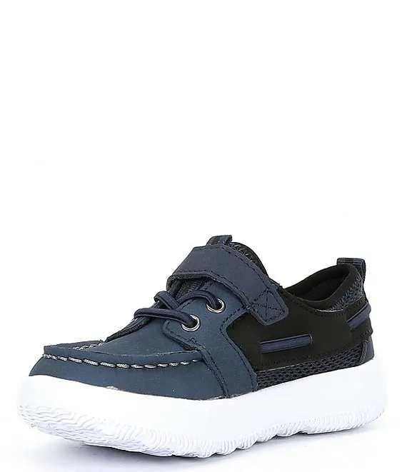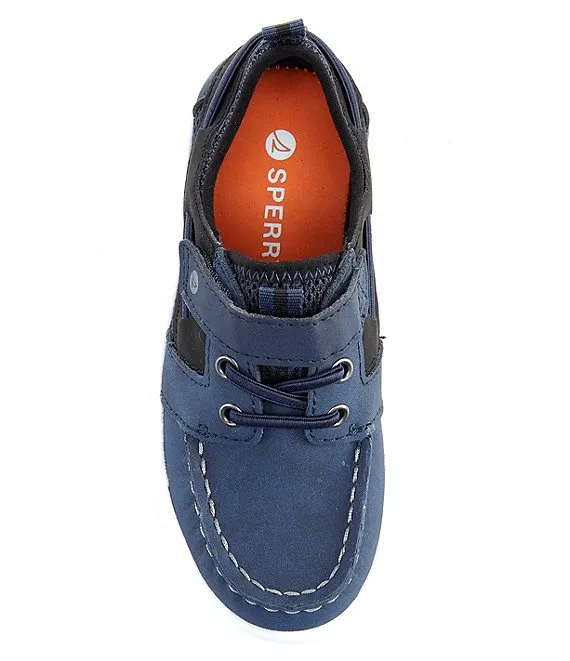 From Sperry, the Boys' Bowfin Leather Jr. Boat Shoes feature: