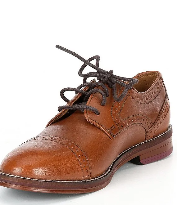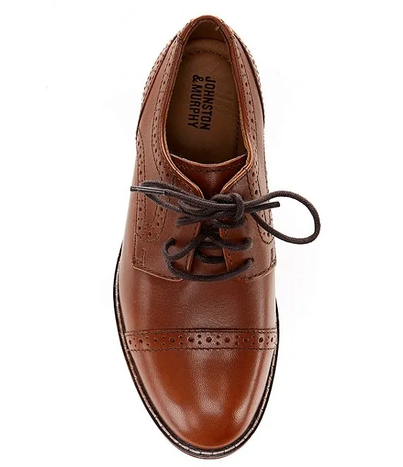 From Johnston & Murphy, the Boys' Conard Cap Toe Leather Oxfords feature: