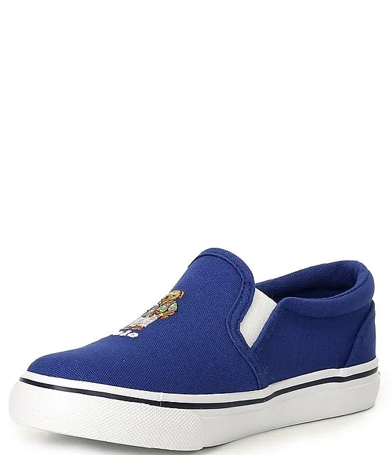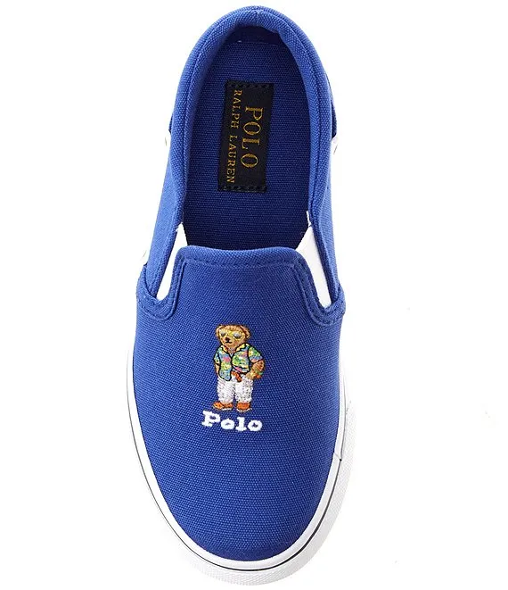 From Polo Ralph Lauren, the Boys' Keaton Beach Shop Bear Slip-On Sneakers feature: