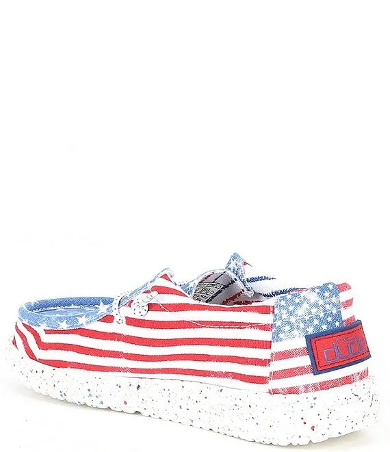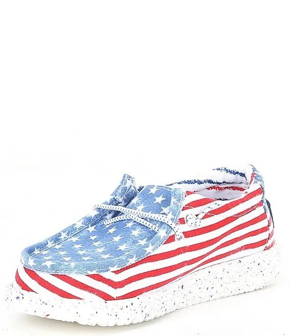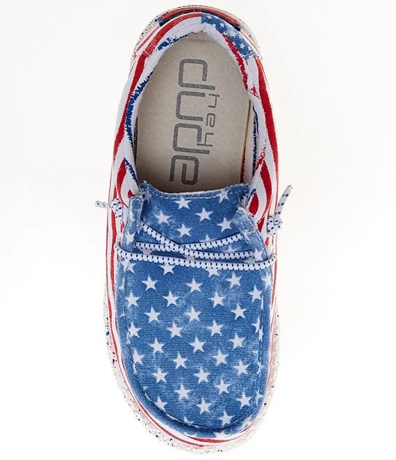 From HEYDUDE, the Boys' Wally Star Stripe Print Washable Slip-Ons feature:
