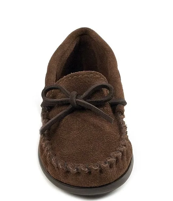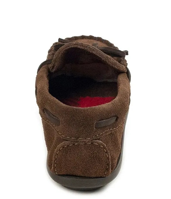 From Minnetonka, the Kid's Boat Suede Moccasins feature: