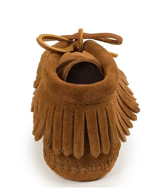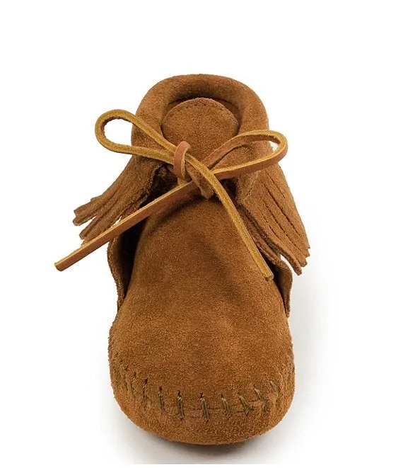 From Minnetonka, the Kids' Suede Fringe Softsole Boots feature: