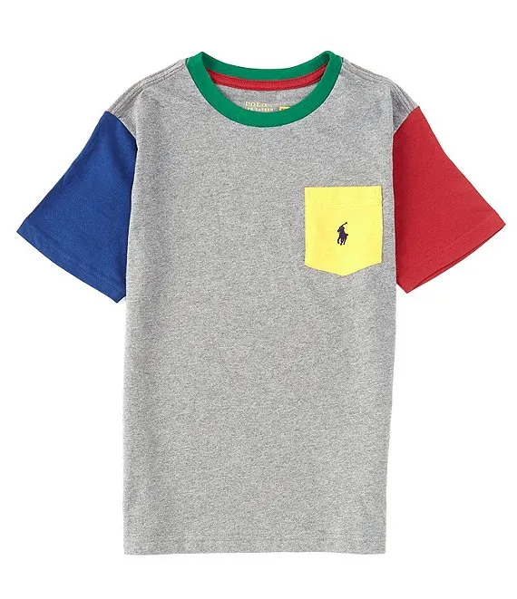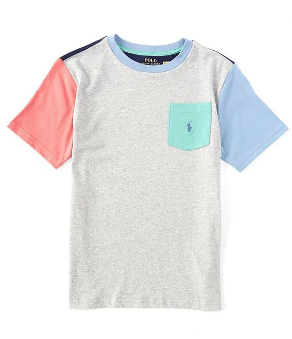 • Lauren Ralph Lauren Big Boys 8-20 Short Sleeve Color Blocked Crew Neck Pocket Logo T-Shirt