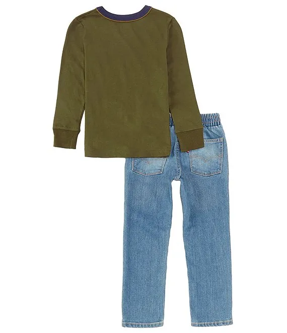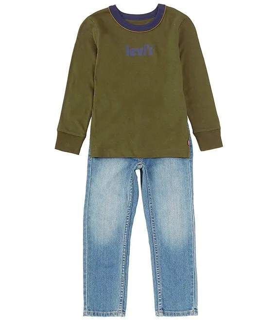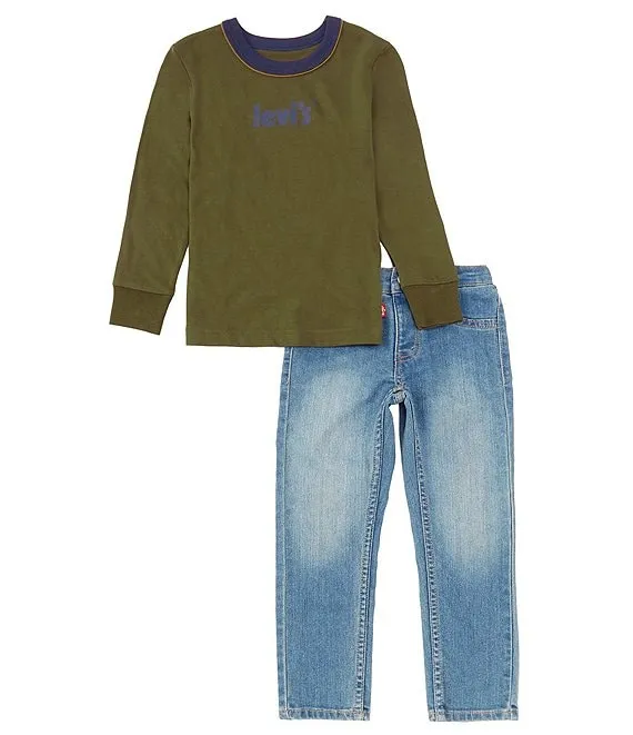 Levi's® Little Boys 2T-7 Long Sleeve Poster Logo T-Shirt and Denim Pants Set