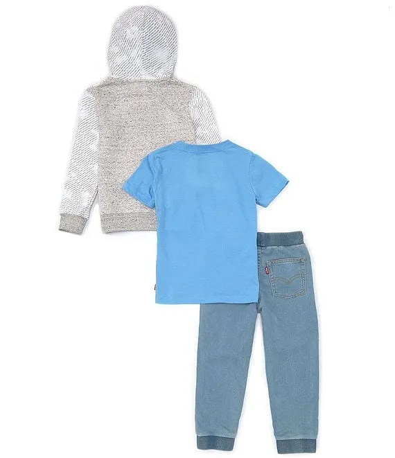 Levi's® Little Boys 2T-7 Short Sleeve T-Shirt Color Blocked Hoodie & Denim Pants Set