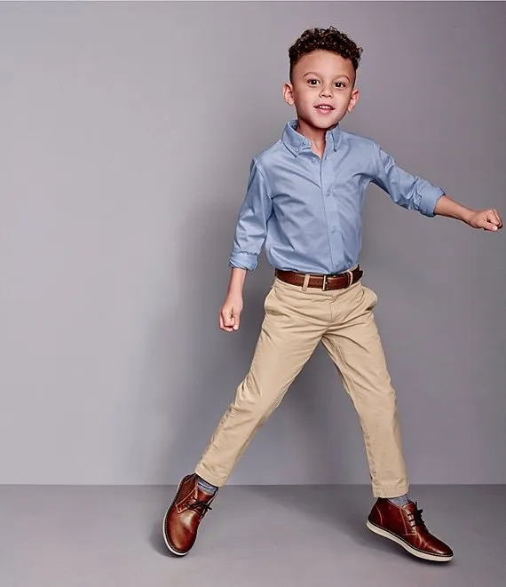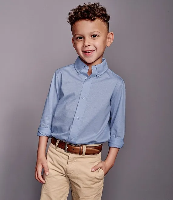 • Little/Big Boys 4-16 Long-Sleeve Birdseye XC Flex Button-Front Knit Shirt
