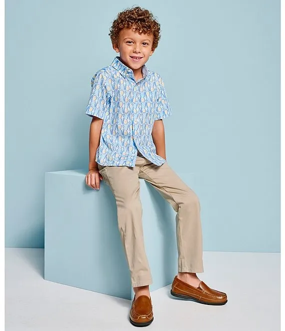 • Little/Big Boys 4-16 Short Sleeve Point Collar Chest Pocket Pineapple Print Shirt