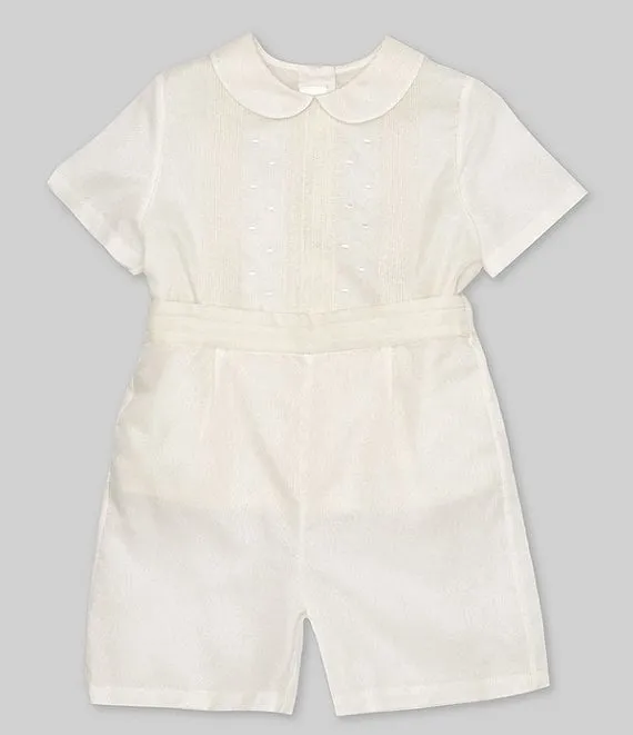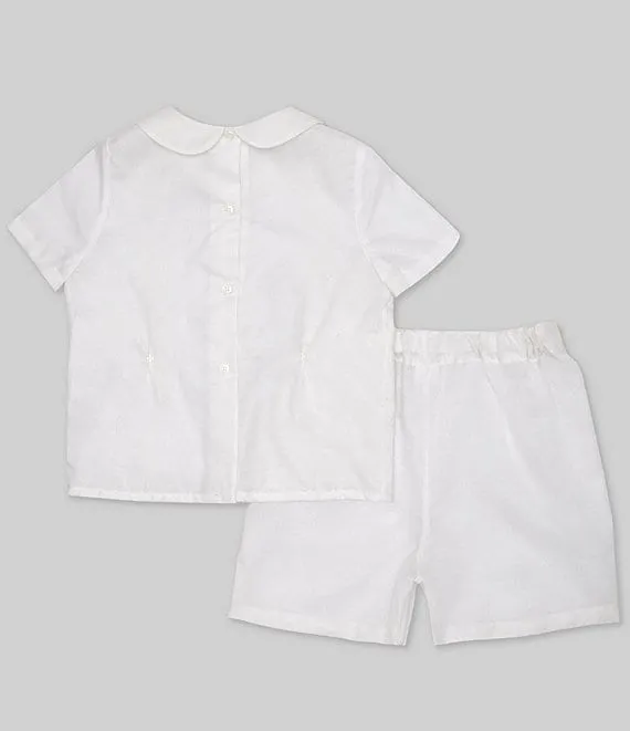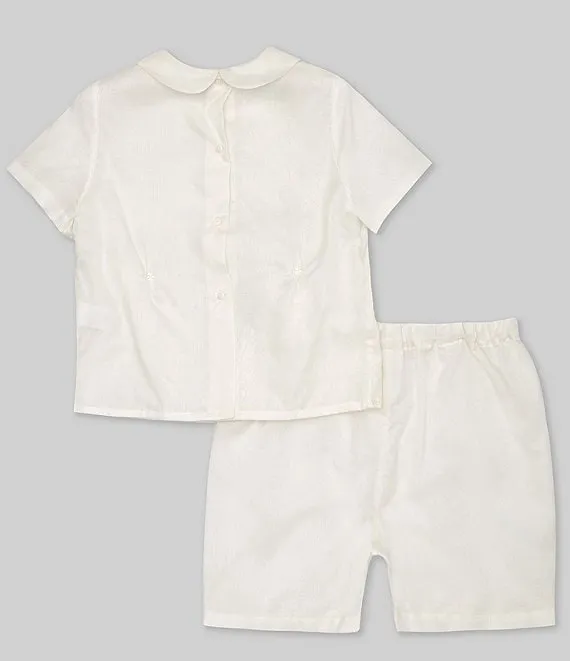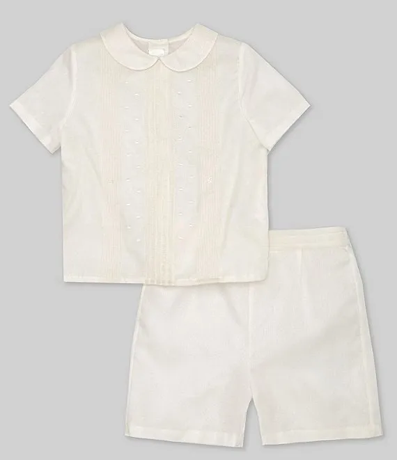 • Edgehill Collection Little Boy 2T-4T Peter Pan Collar Short Sleeve Heirloom Christening Top & Shorts Set