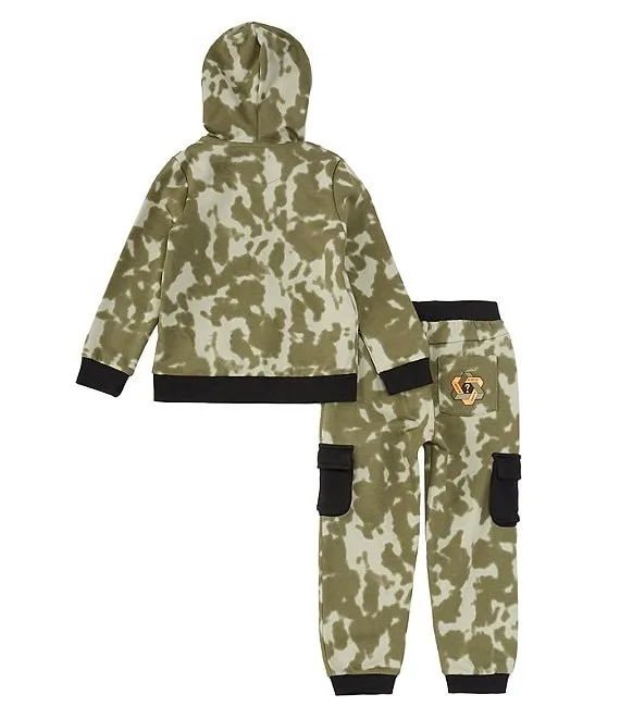 - Camouflage-printed French terry jacket with attached hood
