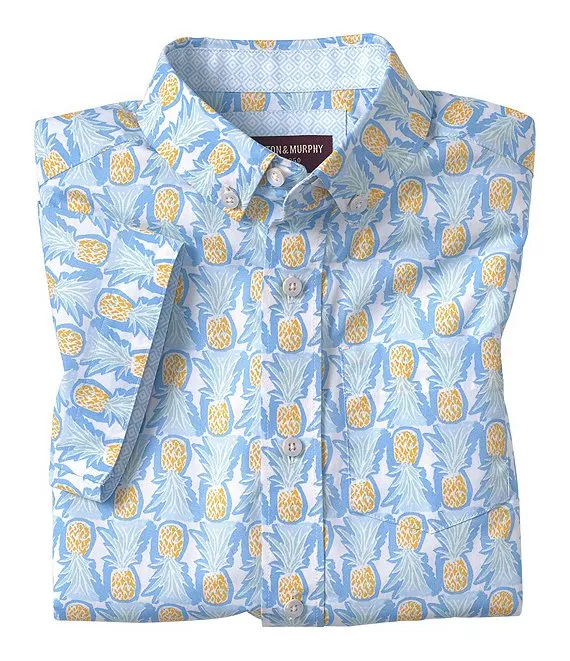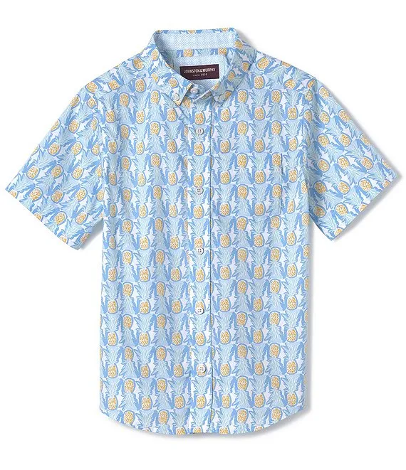 Little/Big Boys 4-16 Short Sleeve Point Collar Chest Pocket Pineapple Print Shirt