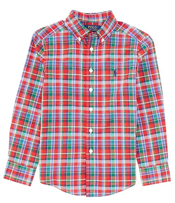 Lauren Ralph Lauren Big Boy 8-20 Long Sleeve Multi Plaid Poplin Shirt