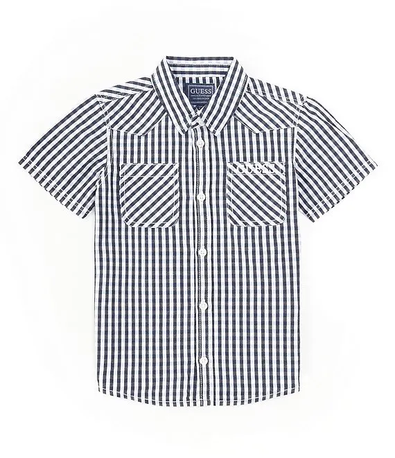 Guess Little Boys 2T-7 Short Sleeve Checked Poplin Shirt