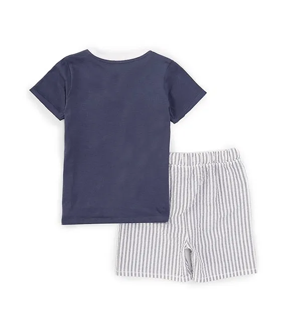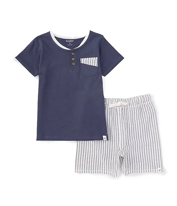 Little Boys 2T-5T Short Sleeve Henley T-Shirt and Printed Shorts Set