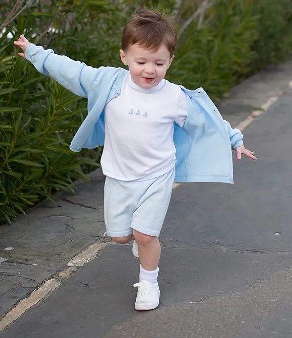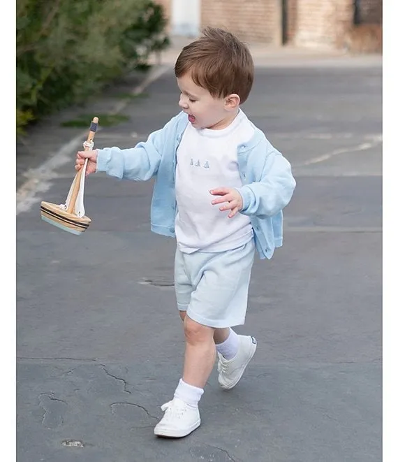 Edgehill Collection x The Broke Brooke Little Boys 2T-4T William Boat Embroidered Short Sleeve Top & Shorts Set