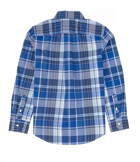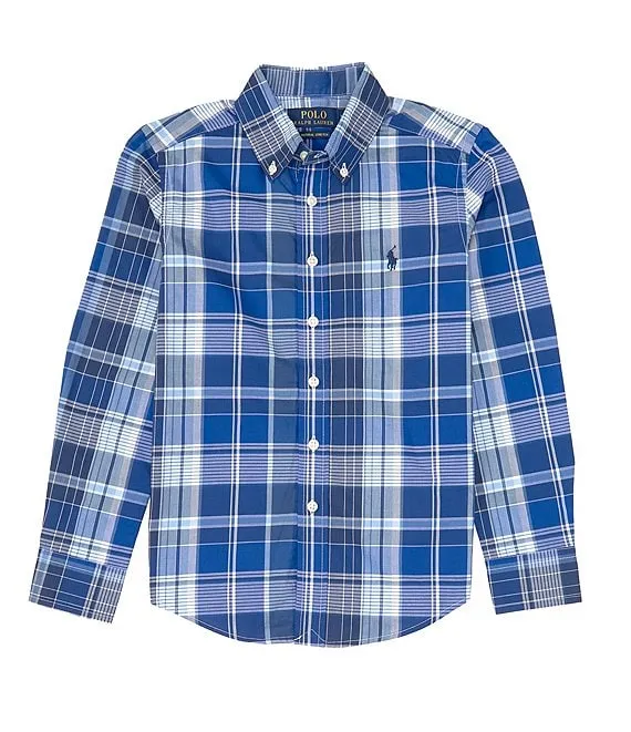 Lauren Ralph Lauren Big Boy 8-20 Long Sleeve Blue Multi Plaid Poplin Shirt