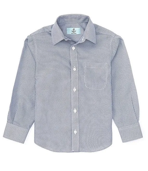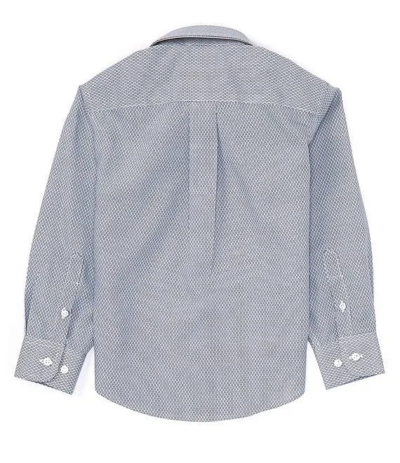 Little Boys 2T-7 Long Sleeve Blue Print Dress Shirt