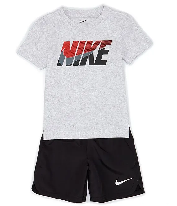 Nike Little Boys 2T-7 Short Sleeve Colorblock Graphic T-Shirt & Short Set