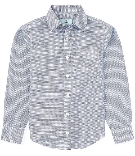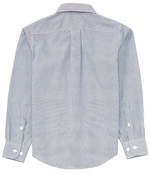 Big Boys 8-20 Non-Iron Point Collar Blue Print Dress Shirt