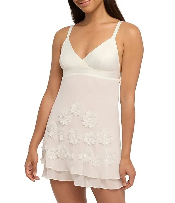 • Charmeuse & Chiffon Floral Applique Open-Back V-Neck Chemise