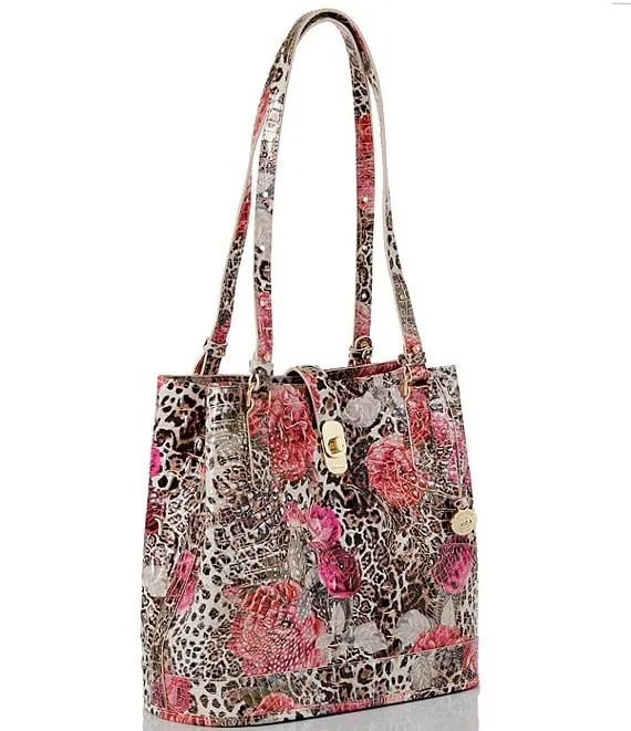 From the Melbourne Collection by BRAHMIN, the Fiora Ermine Floral Shoulder Bucket Bag features: