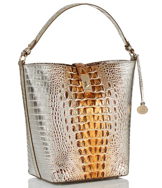 From the Ombre Melbourne Collection by BRAHMIN, the Metallic Macchiato Shira Bucket Bag features: