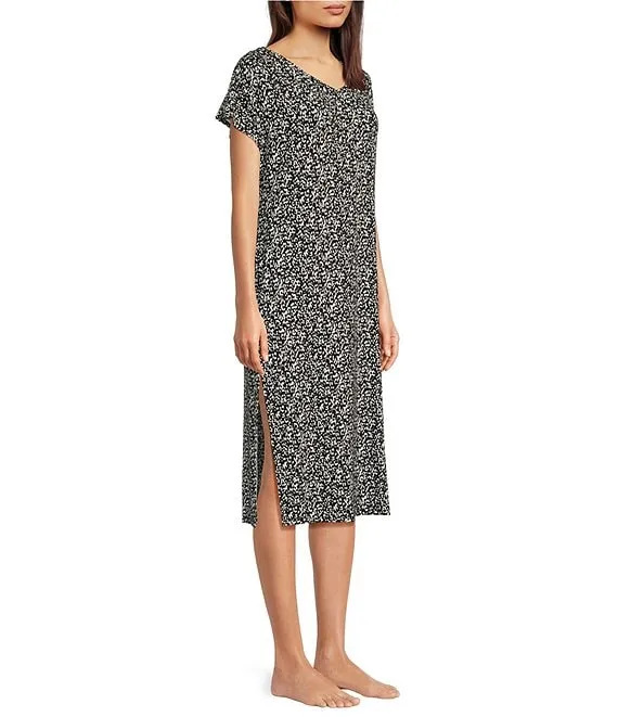Dotted Print Short Sleeve V-Neck Knit Caftan
