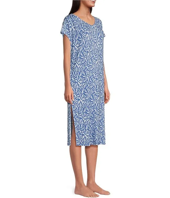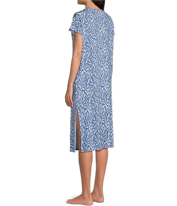 Zebra Print Short Sleeve V-Neck Pocketed Knit Caftan