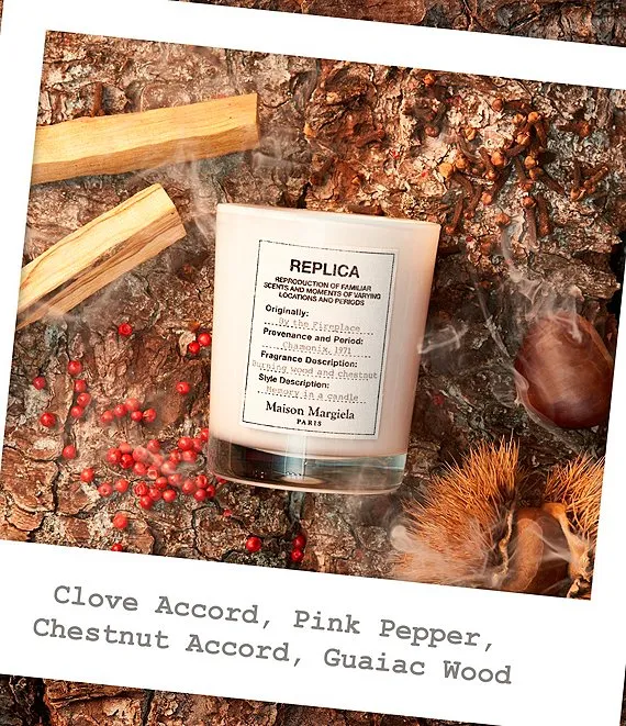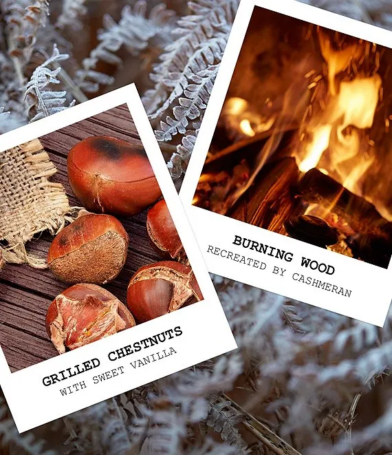 A truly unique aroma where orange flower and vanilla perfume are layered atop the woody scent of clove oil and chestnut to create a perfectly balanced scent. This luxury candle brings the vision of a crackling fire to life in a blend of spicy perfumes.